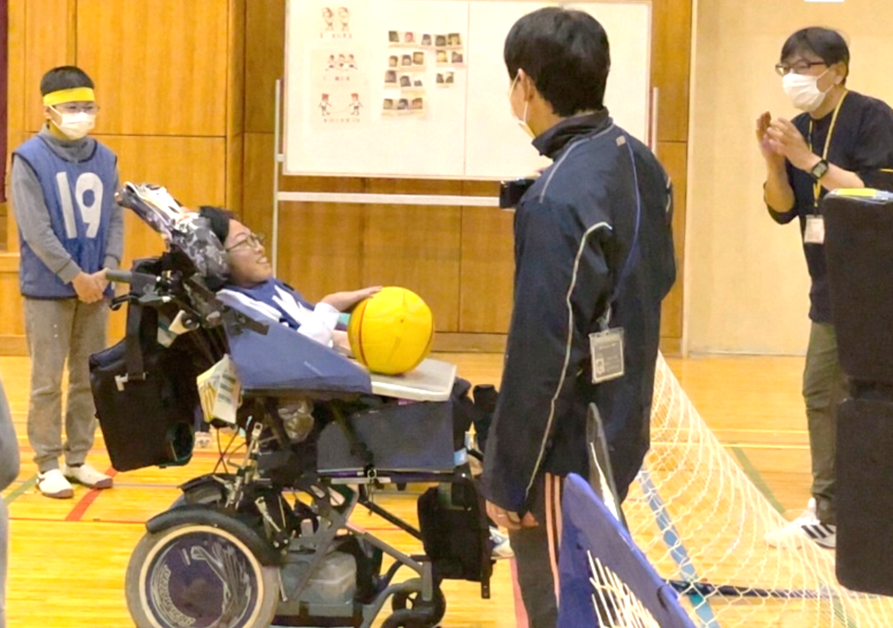 赤と青のチームに分かれ、他のグループの生徒から声援や、シュートが決まったときには歓声を受け、チームの一体感を感じながら、充実した時間を過ごすことができました。