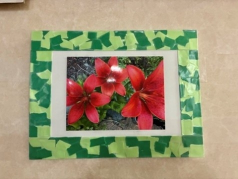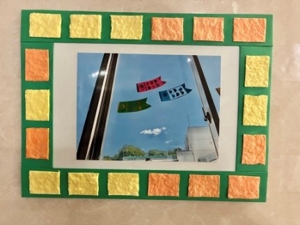 和紙を好きな色に染めてちぎり、紙箱に貼りました。色を組み合わせたり重ねたり考えながら制作しました。