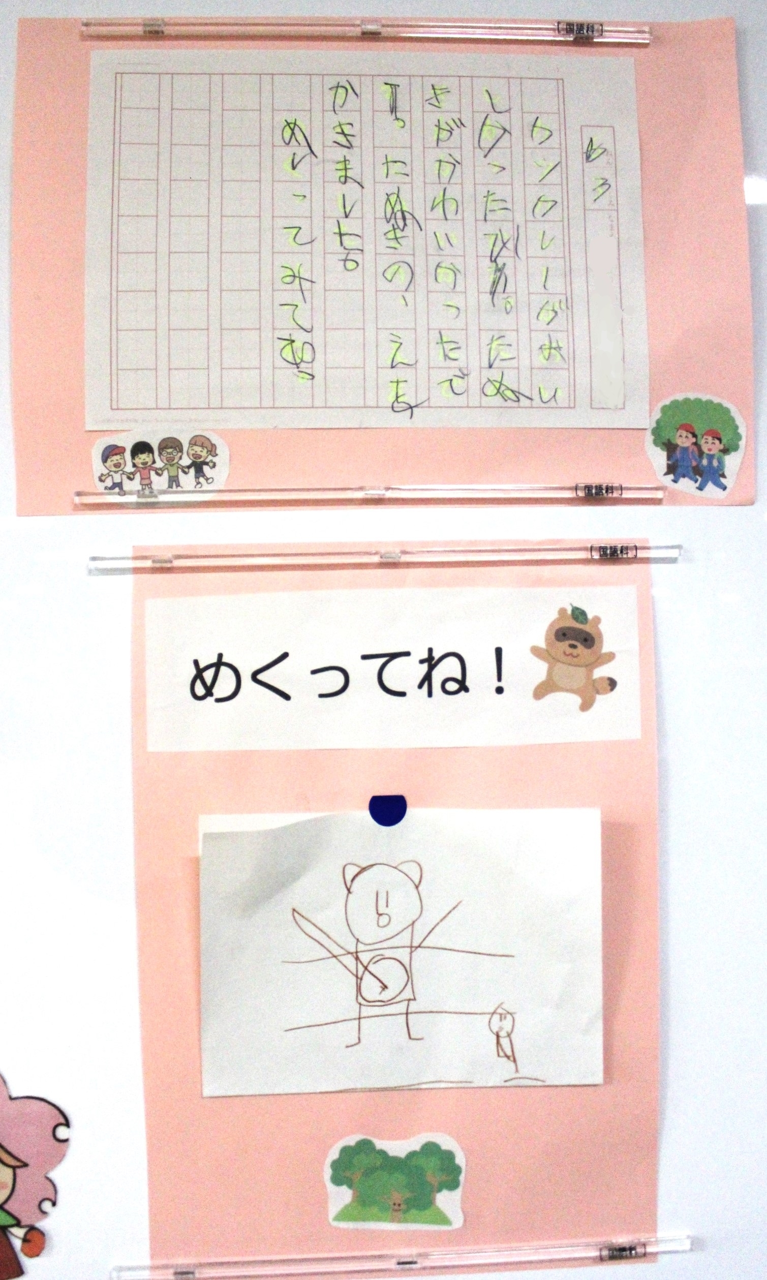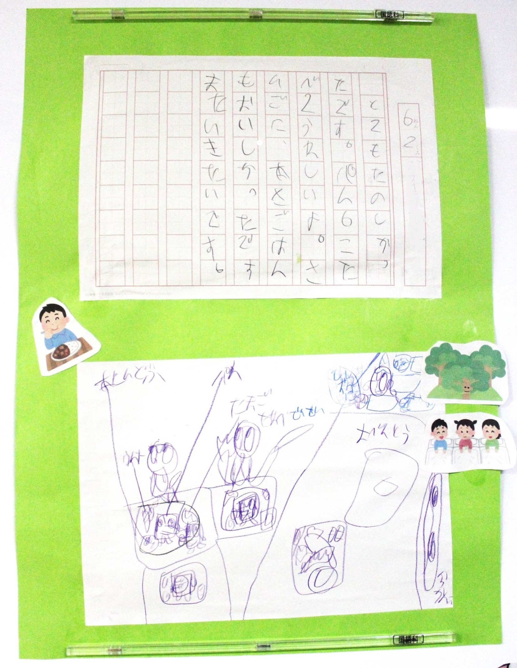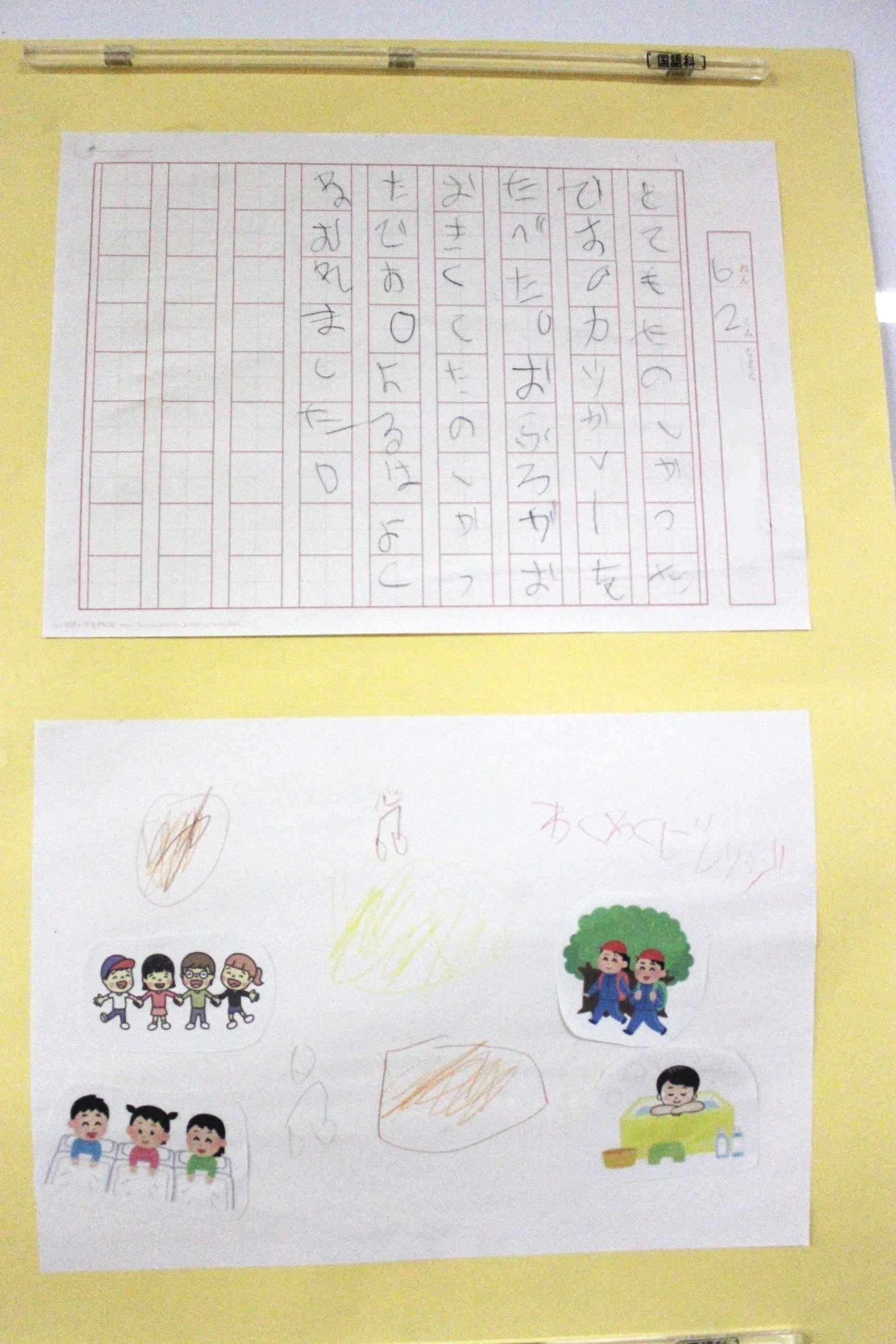 それぞれの楽しかった思い出をイラストと作文にしました。